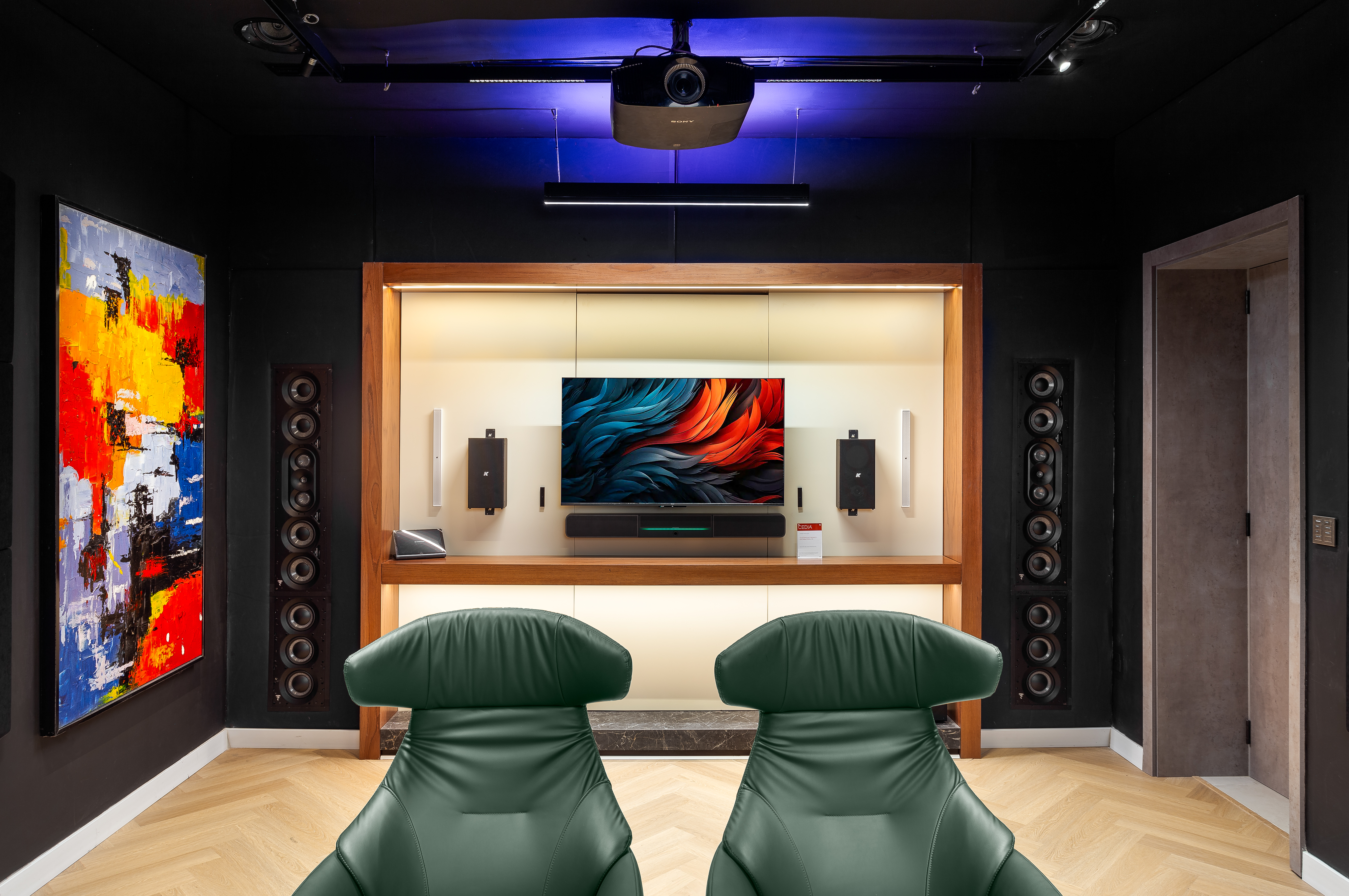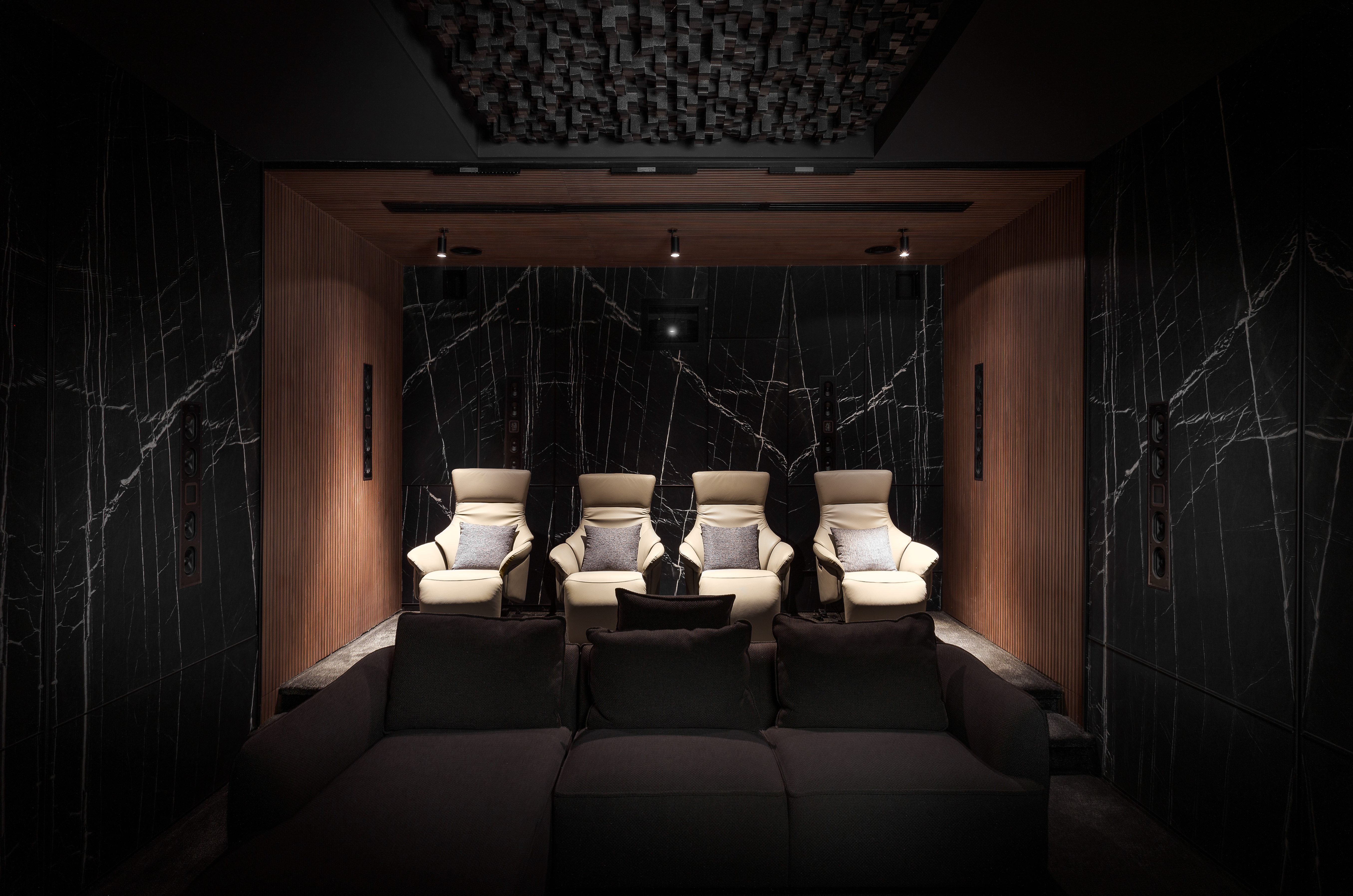 A cinematic environment tuned for Dolby Atmos demonstrations and private screenings.