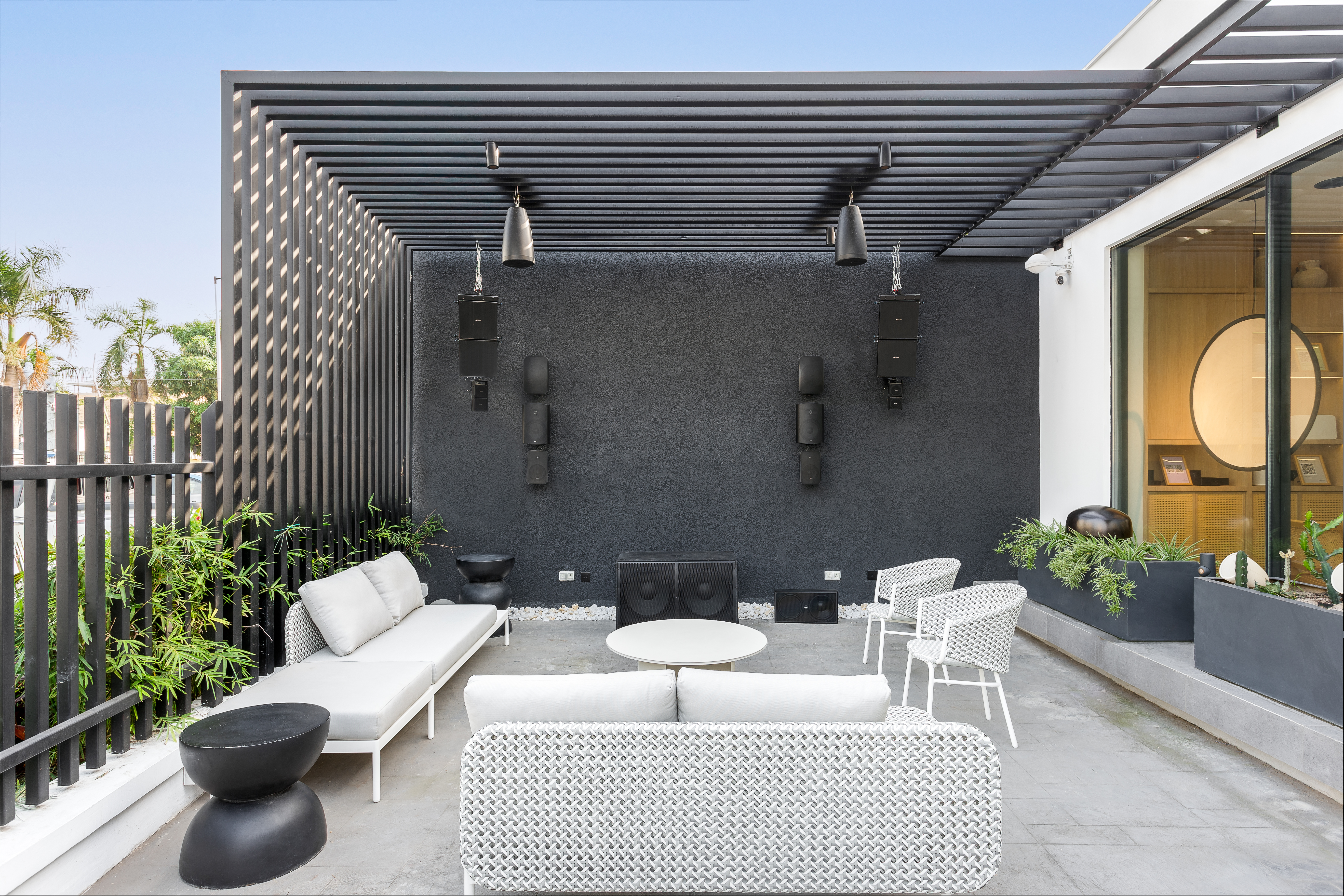 Hear powerful, weatherproof audio crafted for gardens, pools, and outdoor luxury.